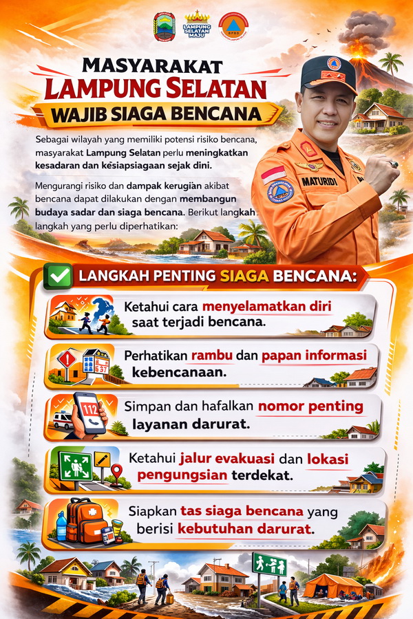 Layanan Pencegahan dan Kesiapsiagaan BPBD Lampung Selatan berfokus pada upaya mengurangi risiko benc...