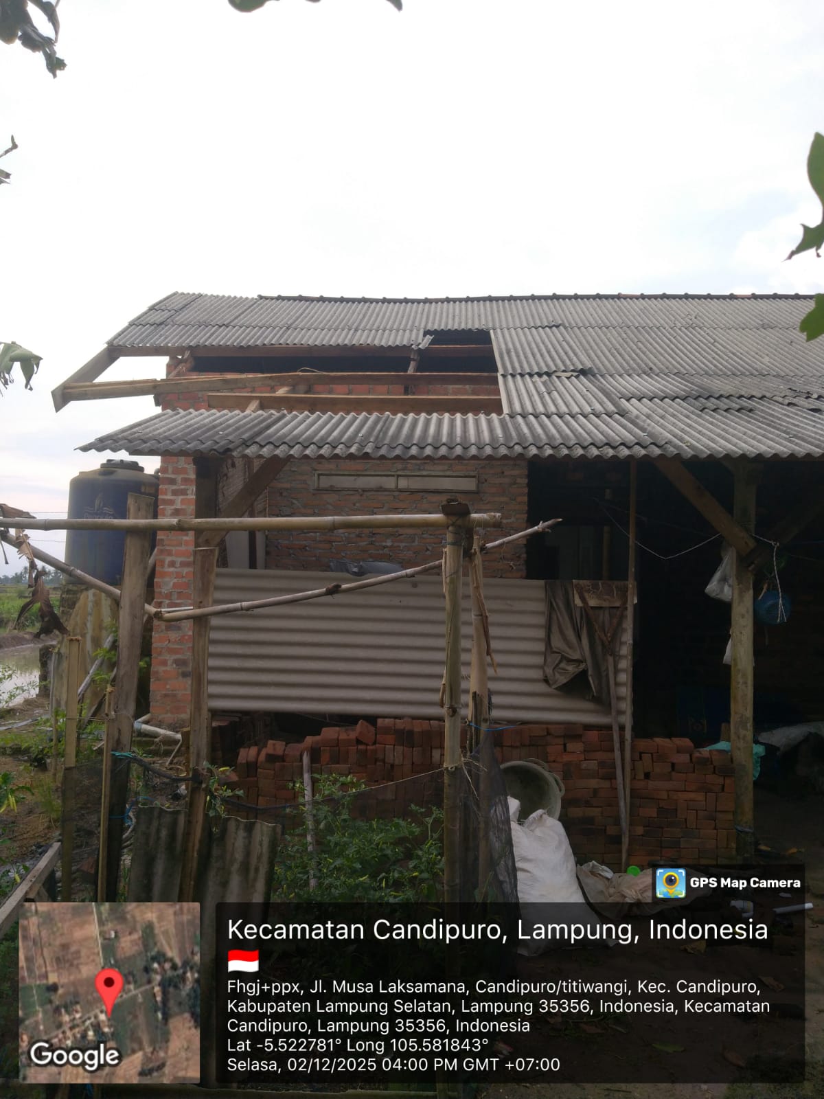 Dokumentasi BPBD Lampung Selatan menunjukkan kondisi rumah yang atap asbesnya rusak berat diterjang angin puting beliung. Foto: Dok. BPBD Lampung Selatan