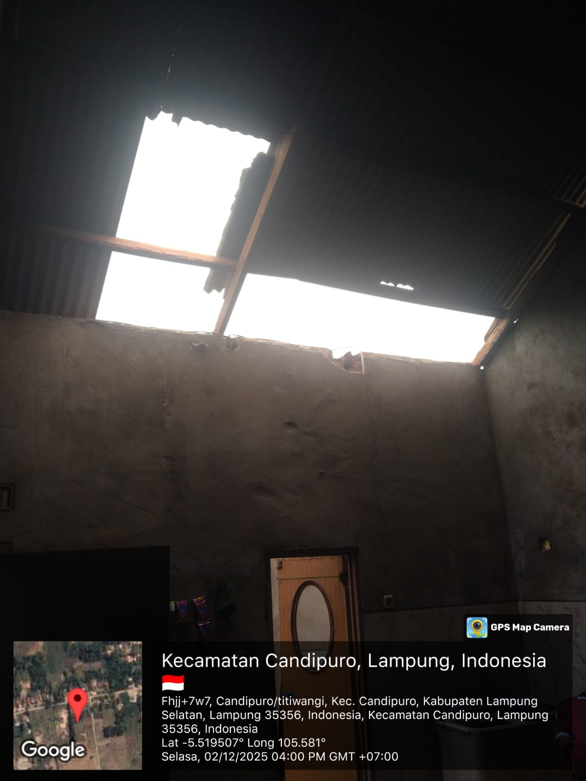 LAMPUNG SELATAN – Bencana angin puting beliung dengan kecepatan tinggi menerjang tiga desa di Kecamatan Candipuro, Kabupaten Lampung Selatan, pada Selasa (2/12) sore. Kejadian cuaca ekstrem yang berlangsung singkat namun intens sekitar pukul 17.40 WIB itu dilaporkan menyebabkan kerusakan material yang cukup parah pada belasan bangunan tempat tinggal dan usaha warga di Desa Beringin Kencana, Desa Titiwangi, dan Desa Cintamulya. Pusat Pengendalian Operasi Penanggulangan Bencana (Pusdalops PB) Badan Penanggulangan Bencana Daerah (BPBD) setempat telah menerbitkan laporan awal dampak kejadian tersebut hanya dalam waktu empat jam pascabencana.