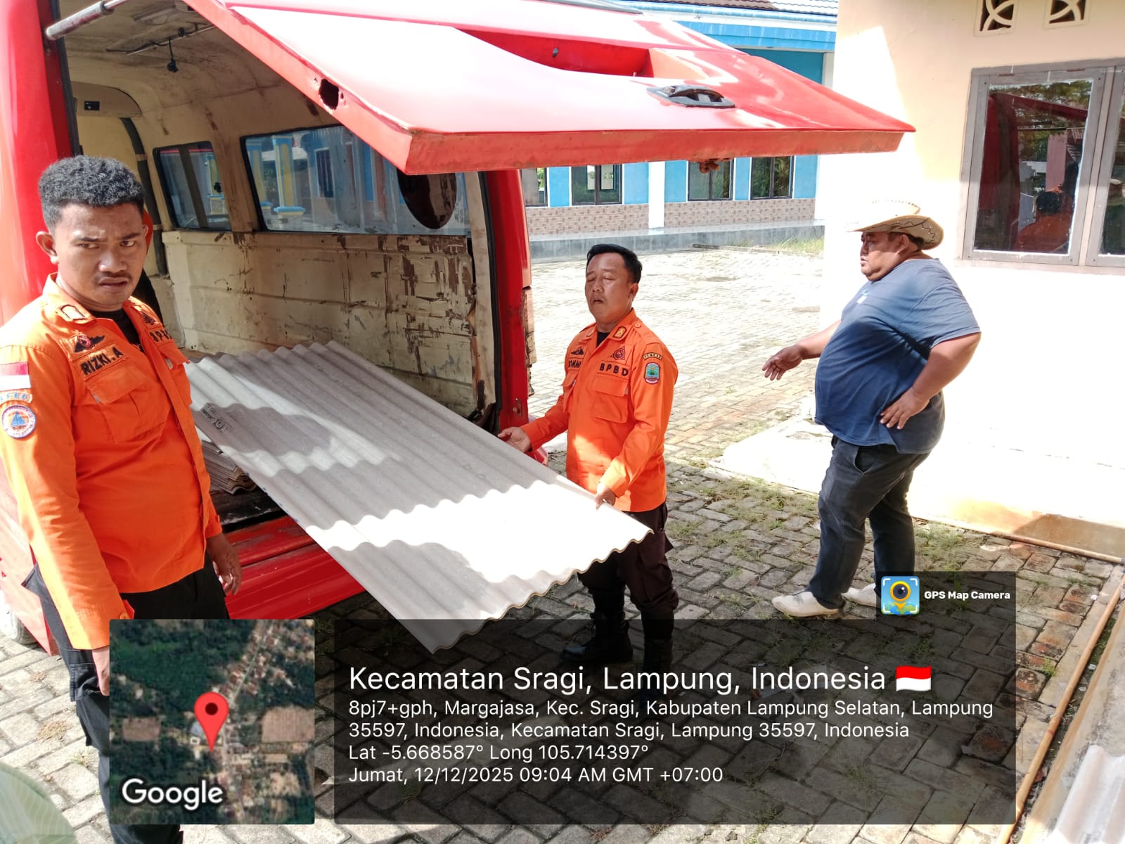 BPBD Lampung Selatan dan Jaringan Mitra Salurkan Bantuan Atap ke Warga Terdampak di Sragi dan Penengahan