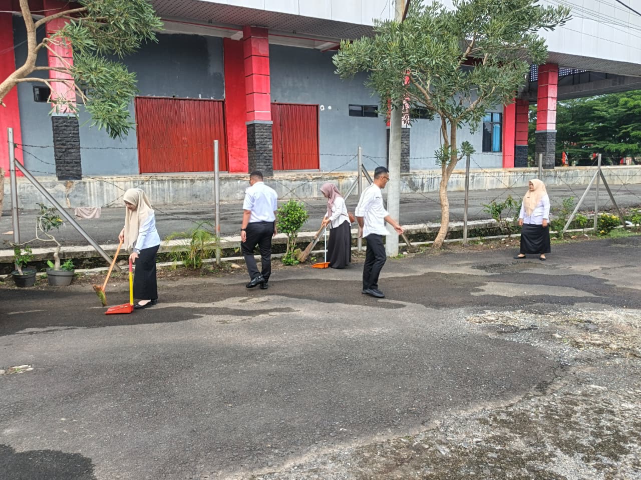 Melaksanakan kerja bakti / gotong royong bersih-bersih kantor dan lingkungan kerja secara menyeluruh dan berkelanjutan, di dalam maupun luar ruangan.