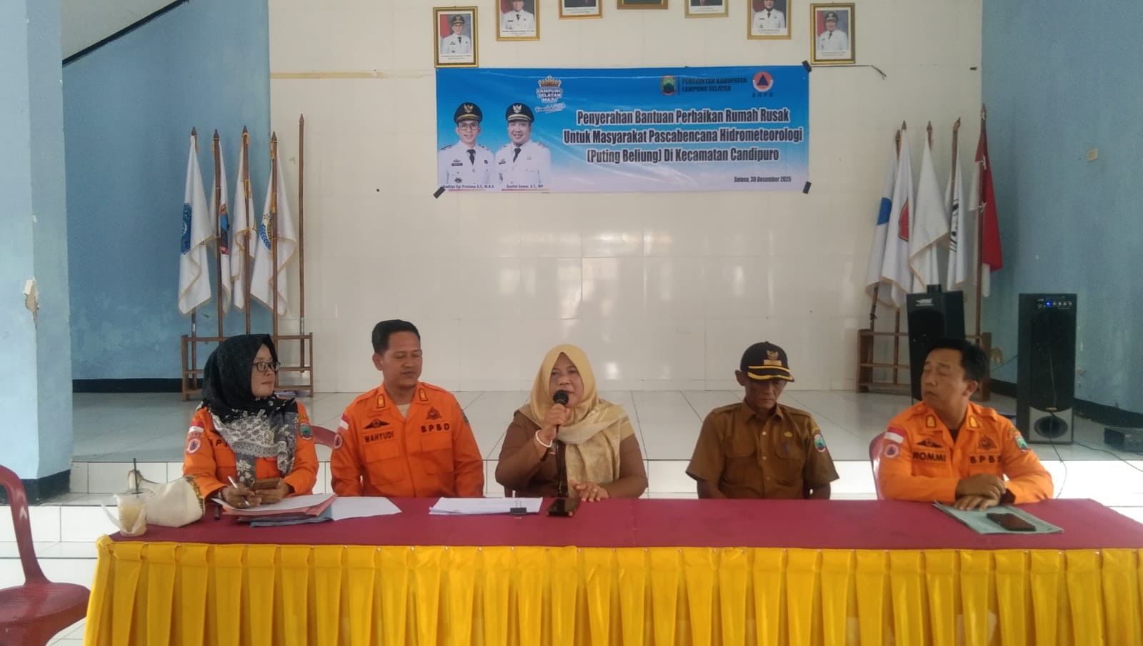 Dalam sambutannya, Camat Candipuro Sumiyati, SE. menyampaikan penghargaan yang tinggi atas respon cepat dan kepedulian Pemerintah Kabupaten melalui BPBD. "Bantuan ini diharapkan dapat meringankan beban saudara-saudara kita dan mempercepat proses perbaikan rumah agar kehidupan dapat kembali normal dengan segera," ujarnya.