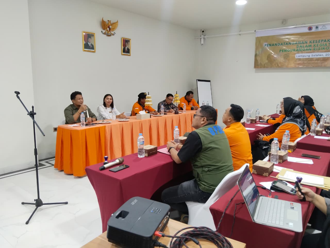 “Penandatanganan kesepakatan bersama hari ini merupakan langkah strategis dan momentum penting dalam memperkuat kolaborasi multi-pihak. Dengan sinergi yang solid dan terpadu, upaya pengurangan risiko bencana dapat dilakukan lebih terintegrasi, terarah, sistematis, dan berkelanjutan. Ini sejalan dengan visi dan misi BPBD Lampung Selatan dalam membangun masyarakat yang tangguh dan mandiri,” ujar Maturidi, S.H., Plt. Kalaksa BPBD Lampung Selatan, dalam sambutan pembukaannya.