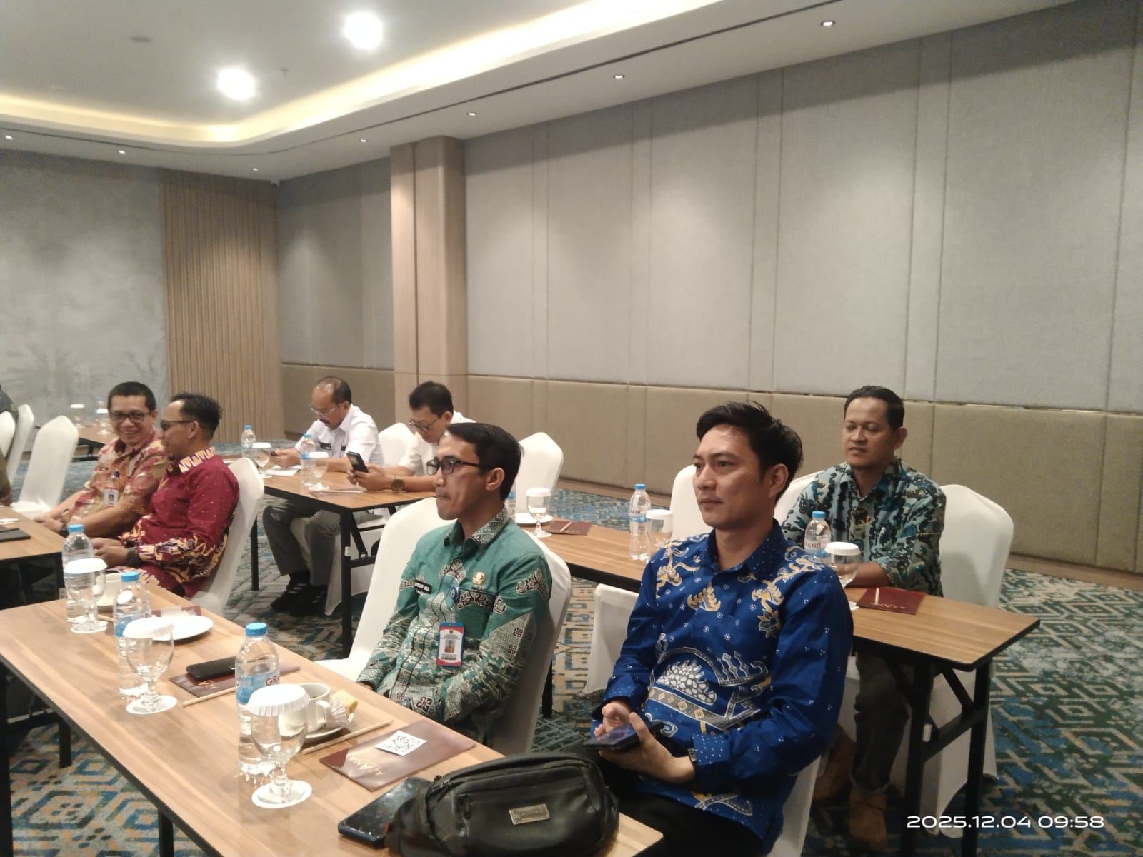 Foto : Diskusi dalam sebuah rapat perencanaan tata ruang yang menunjukkan peserta menyimak presentasi dengan peta dan diagram proyeksi di layar.
