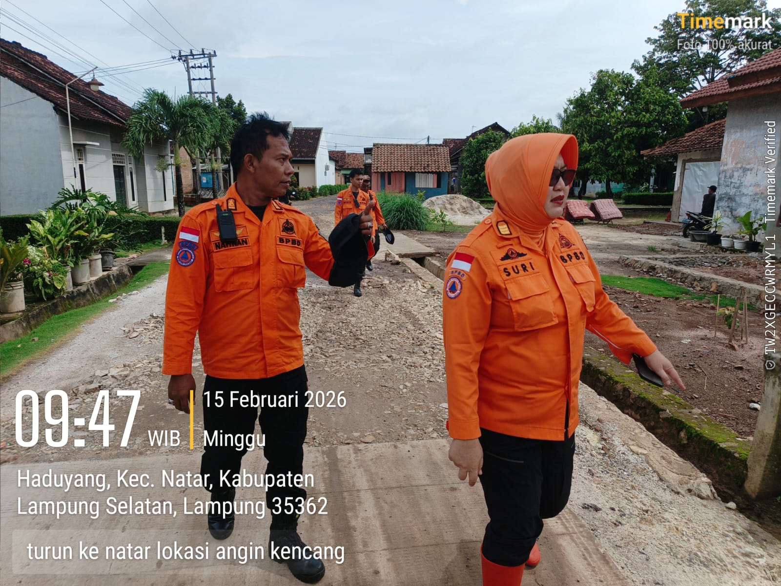 Plt. Kepala Bidang Kedaruratan dan Logistik BPBD Lampung Selatan, Nurma Suri, SE, secara langsung memimpin tim gabungan yang turun ke lokasi. Ia berkolaborasi dengan Kepala Bidang Rehabilitasi dan Rekonstruksi BPBD Lampung Selatan, Wahyudi Pramono, S.T., M.T, serta didampingi oleh anggota Tim Reaksi Cepat (TRC) dan Tim Inventarisasi dari Bidang Rehabilitasi dan Rekonstruksi.