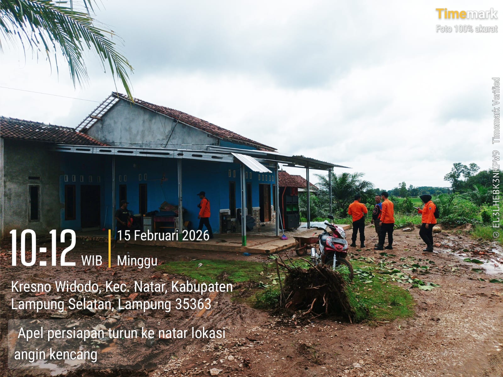 Adapun kejadian musibah dilaporkan terjadi pada pukul 18.20 WIB di Desa Haduyang, Kecamatan Natar, berupa hujan deras dan angin kencang yang mengakibatkan pohon tumbang dan atap rumah warga berterbangan.
